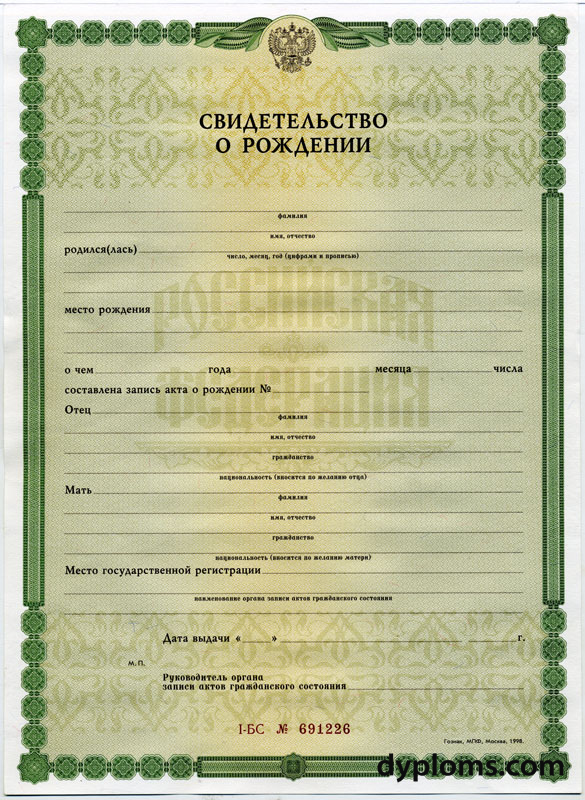 Приняв решение купить свидетельство о рождении, заполните электронную форму на нашем сайте. Обязательно укажите все необходимые данные. Сообщите, если требуется изготовление свидетельства СССР. Для срочного заказа оставьте контактный телефон - наш менеджер свяжется с вами для уточнения деталей.
