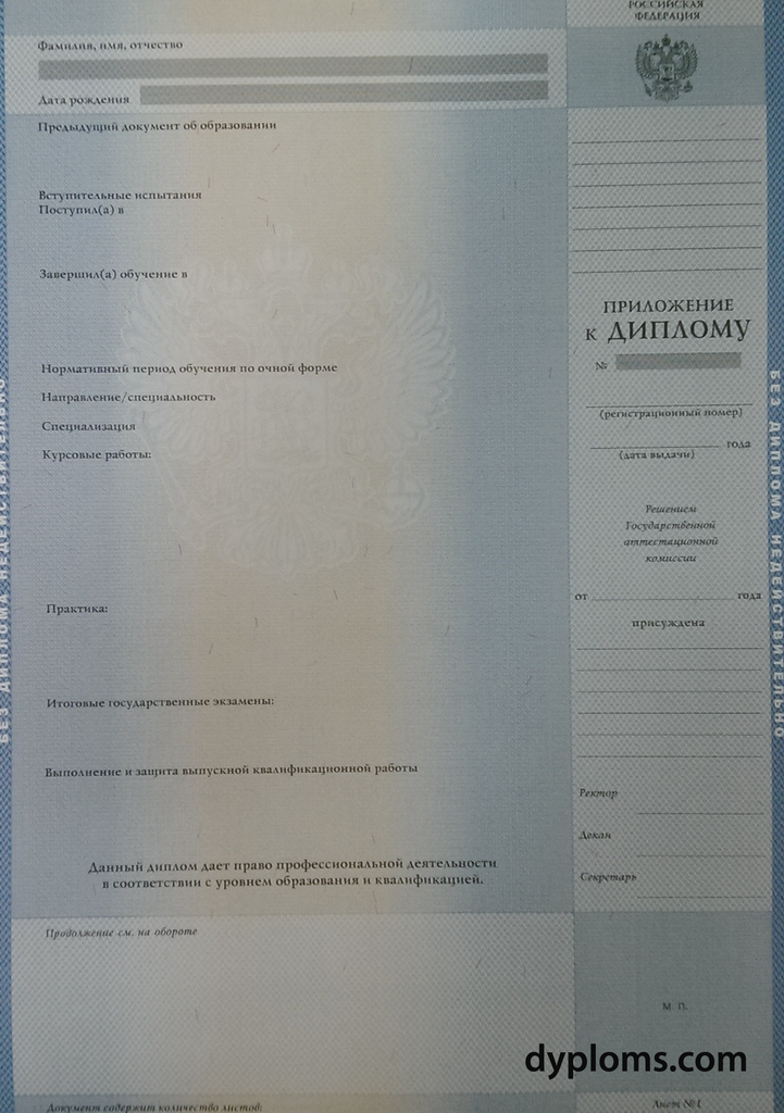 1. Диплом современного образца с официальными государственными символами и защитными элементами.